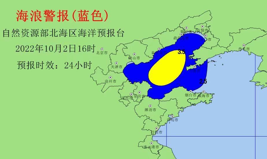 自然资源部北海区海洋预报台根据《自然资源部北海局海洋灾害应急执行预案》发布风暴潮Ⅲ级警报(黄色)及海浪蓝色警报。